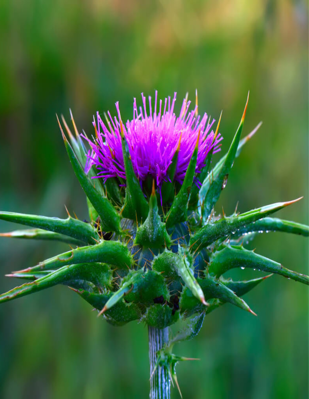 - Bíborlila fészkes virágzat, tövises levelek